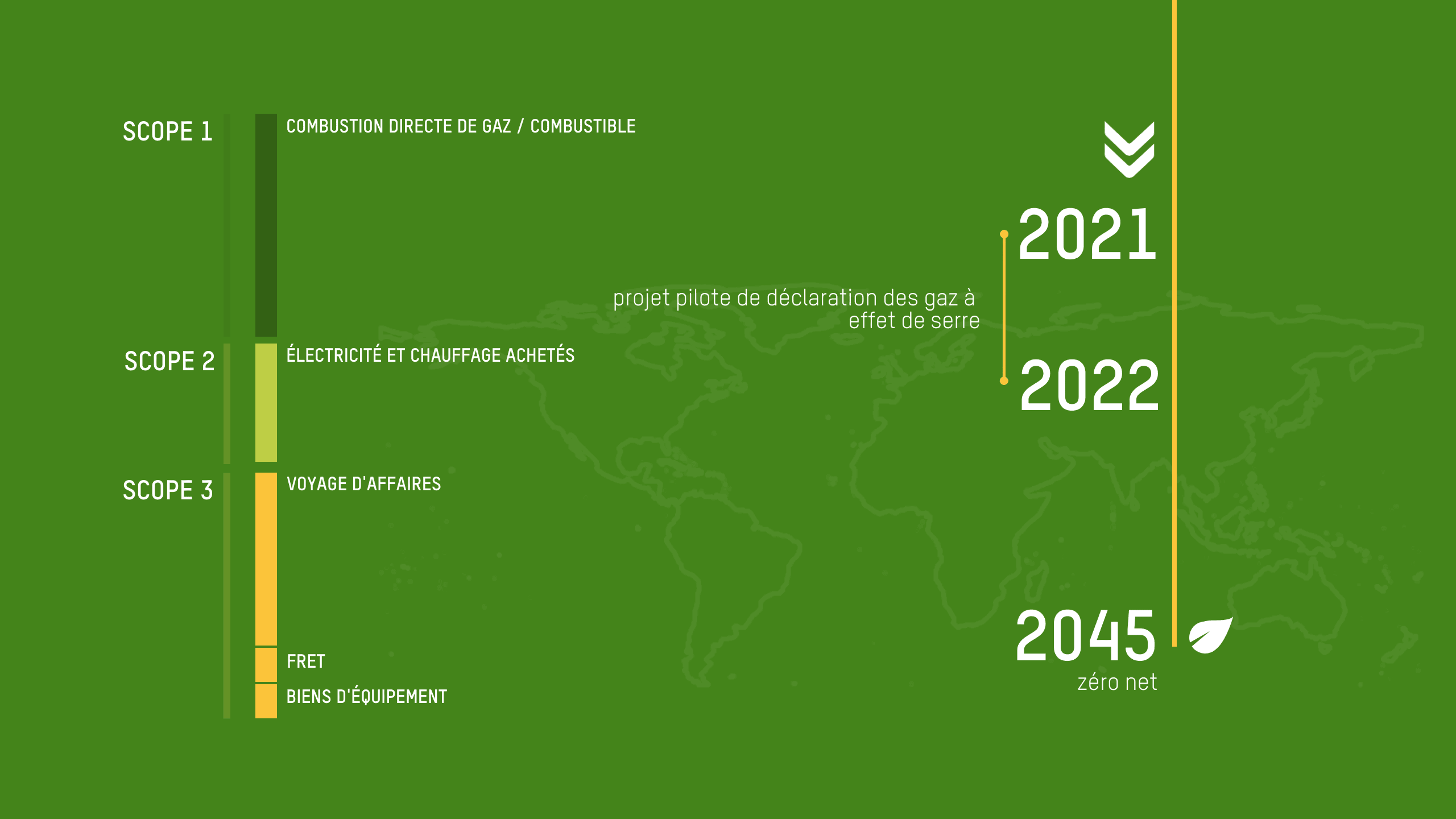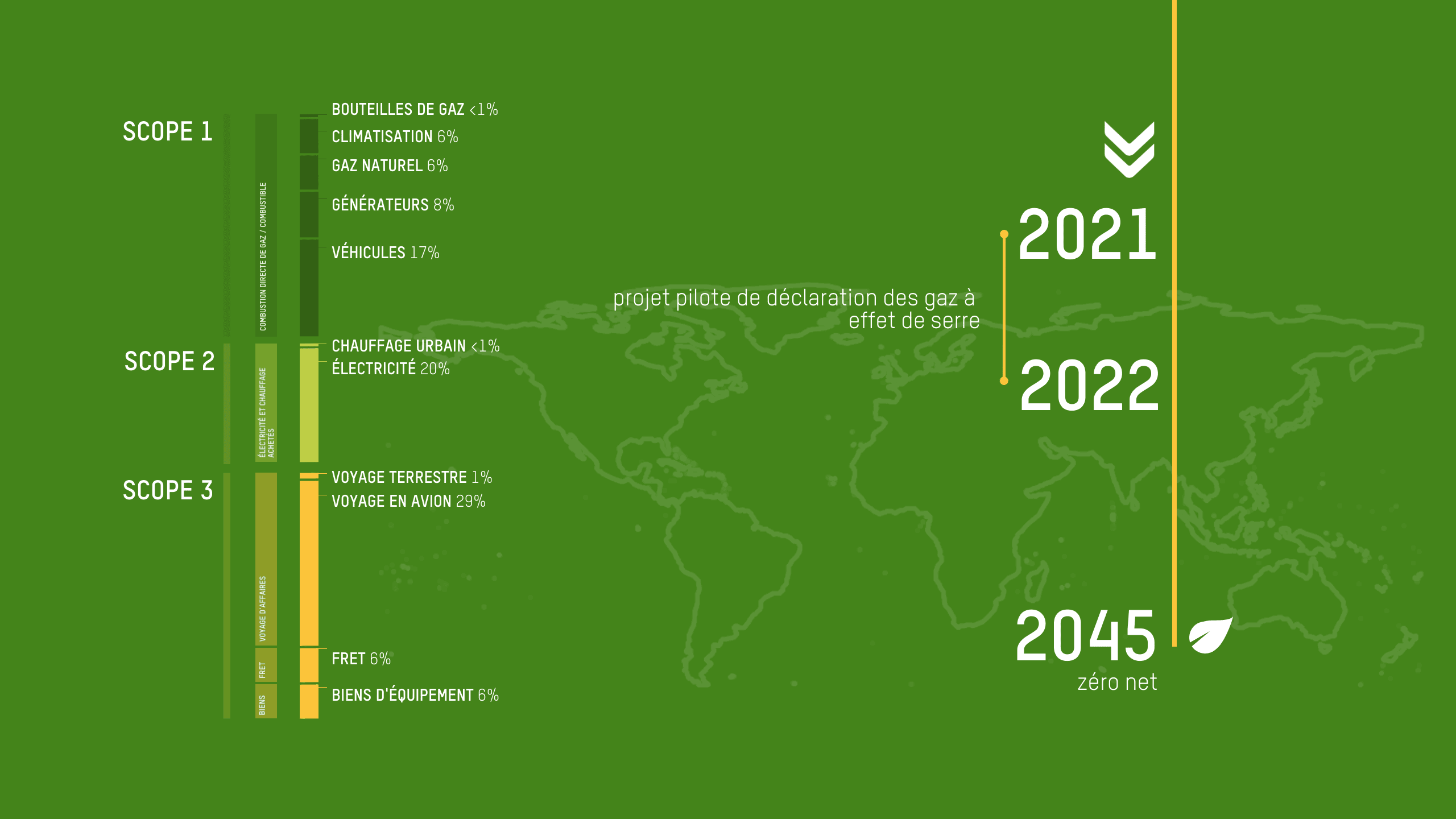 En 2021-2022, nous avons expérimenté la déclaration des gaz à effet de serre à l’échelle de la confédération. Les enseignements tirés de cette expérience ont servi à développer notre base de référence des émissions avec les données sur les émissions de 2022-2023.